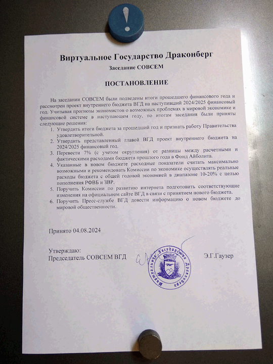 42. 04/08/2024 -- Постановление СОВСЕМ о принятии бюджета. Текст постановления.
