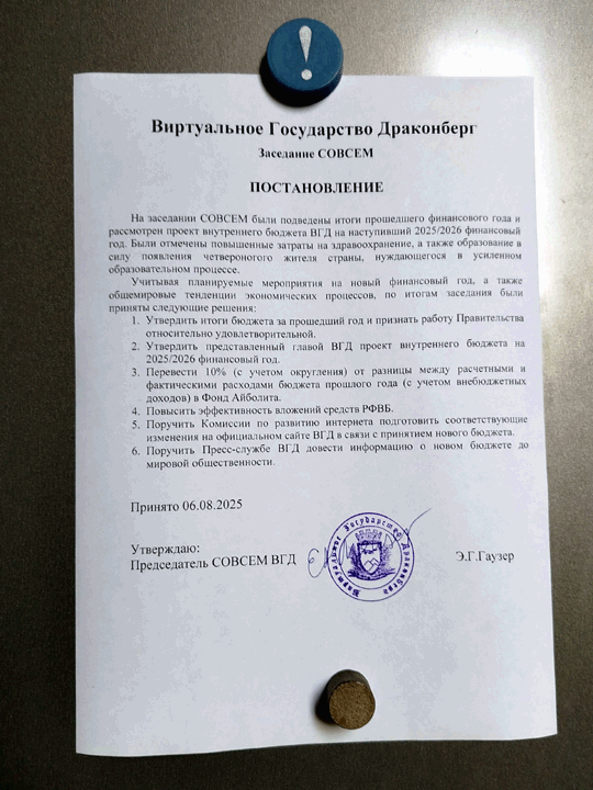 43. 06/08/2025 -- Постановление СОВСЕМ о принятии бюджета. Текст постановления.